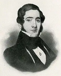 Joseph LaBarge was born on Sunday, October 1, 1815, in St. Louis, Missouri. His father was Joseph Marie LaBarge, Senior and his mother was Eulalie Hortiz LaBarge. He was the second of seven children, three boys and four girls, who all survived to adulthood.[3] His father, at the age of 21, traveled from Quebec in a birch-bark canoe over lakes and rivers and settled in St. Louis at a time when the city was the center of the enormous fur trade. LaBarge Senior fought in the War of 1812, most notably at the Battle of Frenchtown where he lost two fingers during the battle.[4] LaBarge Senior was a trapper who also worked as a guide and engaged in many trapping expeditions in the upper Missouri River. He was considered a riverman in his own right; subsequently all three of his sons, Joseph, John and Charles, aspired to the trade and became riverboat pilots.[5][6][c]