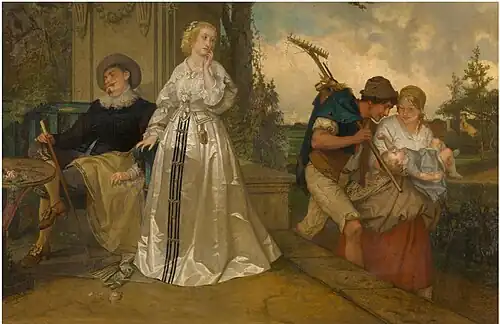Gradually Lies started receiving official recognition for his work. In 1851 he was awarded the gold medal at the exhibition in Brussels for his Interrogation of Joan of Arc.[4] In 1853 he again obtained the gold medal in Brussels.[5] In 1858 he was made a knight of the Order of Leopold. When in 1849 the Vereniging van Antwerpse kunstenaars (the 'Association of Antwerp artists') was established, he was elected its secretary. Upon the merger in 1852 of this association with the newly formed Kunstverbond or Cercle Artistique, Litéraire et Scientifique d’Anvers ('Art Association'), Lies retained the post of secretary of the department of visual arts, a position he held until 1861. The Kunstverbond championed changes to the organisation of the Antwerp Academy and Lies was the author of a plan that called for the separation of the artistic and administrative functions in the academy.[6]
