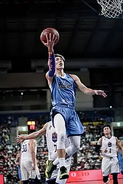 Lin then signed with Taiwan's Taipei Fubon Braves in 2015, for the 2015 SBL season.[5] Lin was averaging 5 points and 2 assists and would get into foul trouble and not really play for the whole first half. Instead of giving up and giving in, Lin fought through the obstacles and proved that he belonged at the pro level. He was named the SBL 2015-2016 Rookie of the Year, became the first rookie ever to be named to the All-SBL first team. He averaged 12.1 points, 4.1 rebounds and 4.4 assists per game.[6][7]