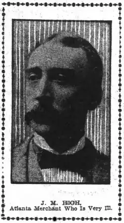 Joseph Madison High (1855–1906) was the founder of Atlanta department store J.M. High Company. His wife, Harriet "Hattie" Harwell Wilson High (1862–1932), donated her family's mansion on Peachtree Street to house the museum that has grown into the High Museum of Art, Atlanta's foremost art museum.
