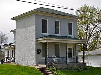 The house is similar to the neighboring Joseph Mallet House. It is a simplified version of the Italianate style that was built in the city of Davenport from the mid-1850s.[3] The house is a two-story, three–bay structure with an entrance that is off center. Like many early Italianate homes in Davenport, it retained some features of the Greek Revival style. These are found in the glass-framed doorway and the simple window pediments.[4]