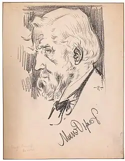 Joseph Pennell (July 4, 1857 – April 23, 1926) was an American draftsman, etcher, lithographer, and illustrator for books and magazines.[1] A prolific artist, he spent most of his working life in Europe, and developed an interest in landmarks, landscapes, and industrial scenes around the world.[1] A student of James Lambdin and Thomas Eakins, he was later influenced by James McNeill Whistler.[2] He was married to author Elizabeth Robins, and he also was a writer.