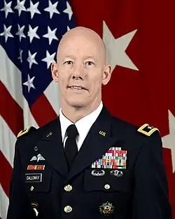 Major General Joseph R. Calloway was commissioned in 1987 through the University of Central Florida ROTC program into the Adjutant General's (AG) Corps. He completed the U.S. Army Adjutant General Officer Basic Course (OBC) in 1988. He retired after relinquishing command of HRC to Brig. Gen. Thomas R. Drew on July 1, 2021. After retirement, Maj. Gen. Calloway made his home in Virginia.[2]