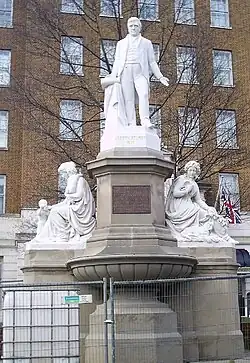 In 1925 the monument was moved a short distance, to its current position,[3] and a bronze plaque was affixed to the memorial to tell passers-by more about its subject. The inscription reads (all in capitals; punctuation added for readability):