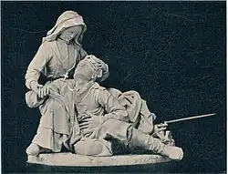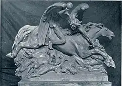 Other statues and reliefs include: The Carrier of the Vase (1909); Absolvo Te (1910);[18] Rokoborca (The Wrestlers) in 1913;[19] Danica-Zarji (1913); Sejalec (1914); Monument to the Fallen (WWI Soldiers Cemetery in Sarajevo) in 1918; a carved wood statue In Nature (Flying Left) in 1922; a marble Holy Family (1926 – now in Chicago); Turn (1930); a bronze figure Girl with Grapes and Bear (1935);[20] and a pear wood carved Mother (Ladies with a Child) in 1939.[5]