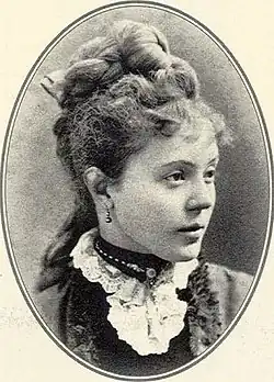 Bruce was an accomplished hostess and socialite, especially during her husband's years serving in the Senate.[12] The African-American newspaper Washington Bee noted that Bruce "pays and receives calls from those of her select set with unvarying regard for etiquette".[13] She was said to be fashionable and a great beauty.[4] Newspapers placed great emphasis on her complexion, remarking that it did not evidence an African heritage and that her skin was so fair that she could pass for a Spanish lady.[4] One account said she had blonde hair and blue eyes.[14]