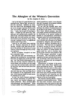- ^ Bruce, Mrs. Josephine B. (November 1904). "The Afterglow of the Women's Convention". The Voice of the Negro. 1: 541–543 – via Hathi Trust Library.