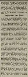 This article was published in August 1915 in The Crisis, the official magazine of the National Association for the Advancement of Colored People. Writing as Mrs. B. K. Bruce, Josephine traced the origin of the national club movement among colored women to Josephine St. Pierre Ruffin's call for a meeting among suffragette women. Consecutive conventions after that led the National Federation of Colored Women and the National League of Colored Women to merge, forming the National Association of Colored Women. She called the organization a “social service not alone for colored people but for humanity”.[22] Over 400 delegates attended these conventions, she said, coming "from the East the West, the North and the South".[22]
