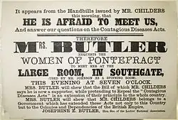 - ^ In 1869 the "Association for the Extension of the Contagious Diseases Acts" was formed to campaign to extend their operation over the whole of the UK.[55]