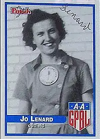 Lenard entered the league in 1944 with the Rockford Peaches, playing for them two years before joining the Muskegon Lassies (1946-'49), Peoria Redwings (1949), Kenosha Comets (1950-'51) and South Bend Blue Sox (1952-'53). In her rookie season, she hit a .211 average and stole 68 bases, while leading the circuit with 10 triples. Her most productive season came in 1947, when she hit a career-high .261 with 38 RBI in 111 games and was selected for the All-Star team. She also made four trips to the playoffs with four teams, including for the championship winners in 1945 and 1952.[1][4]