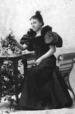 ![]() A young Josephine Anderson Pearson, posing with a book and a rose. | |