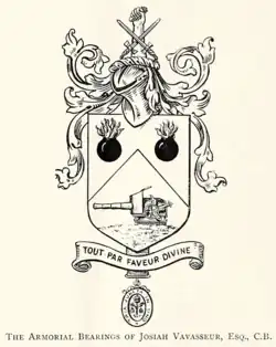The major part of his fortune went to Cecil Fisher, the only son of Admiral of the Fleet Sir John Fisher. The story of the inheritance was retold by The New York Times on 21 November 1910, when Cecil Fisher came to the United States to marry miss Jane Morgan.[9] The paper wrote that Cecil Fisher as a young lieutenant had helped Vavasseur with his work on quick-firing guns at Whale Island, Hampshire. A friendship evolved, and Vavasseur adopted Cecil on the condition that he would take the name and arms of Vavasseur. When Josiah Vavasseur died on 13 November 1908, Cecil Vavasseur Fisher inherited the equivalent of two million USD (corresponding to $70 million in 2024), and when Admiral of the Fleet Fisher was made a baron on 7 December 1909, he took the title Baron Fisher, of Kilverstone in the County of Norfolk.[10][11]