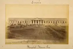 The institution was originally founded in 1628, by the Santa Casa de Misericórdia of Luanda. The neoclassical building was built in 1865–1883 on the ruins of a Franciscan monastery. It was initially a military hospital and was named Hospital Maria Pia, in honor of Queen Maria Pia of Savoy. After the country became independent (1975) it was renamed in 1977 after the Mozambican resistance fighter Josina Machel and declared a historical cultural asset in 1981.[1]