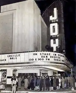 The Joy Theater, named after owner Joy Houck, is a theater and historic landmark built in 1947 on Canal Street in downtown New Orleans, Louisiana. Renovations in 2011 transformed the former movie palace into a multi-purpose theater for live music, stand-up comedy, private functions, and corporate events. The theater's iconic marquee sign was restored, as was the building's original art deco architecture.[1][2]