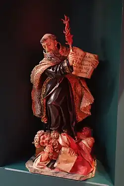 Of less certain attribution are some figures in the "Chapel of the Good Death" at the Iglesia de San Miguel y San Julián in Valladolid, and others in the chapel of the Illustrious Brotherhood of the Holy Cross of the Redeemer and the Immaculate Conception, his Mother in Salamanca.[1]
