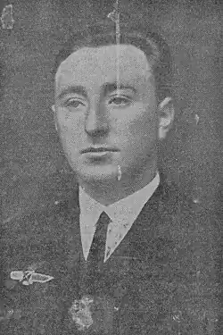 Although a monarchist, Ansaldo was drawn to the violent action and adventurism of fascism and as such maintained close links with such groups. He helped to fund both the Juntas de Ofensiva Nacional-Sindicalista and the Movimiento Sindicalista Española in the early 1930s and personally favoured the latter movement, which owed more to Blackshirts of Italian fascism in its character.[10] With both of the groups floundering, he turned his attentions instead to the Falange and formally joined the group in early 1934. He became jefe de commandos and took charge of the so-called Falange de la Sangre militia squads engaged in responding to the leftist attacks.[11]