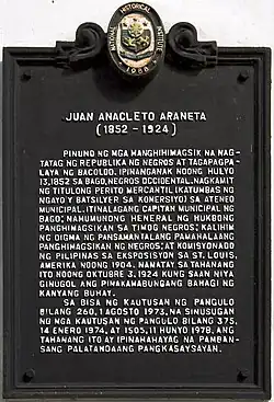 - ^ "On 100th death anniversary, Juan Araneta honored as both revolutionary and farming hero". Rappler. 2024-10-05. Retrieved 2024-10-05.