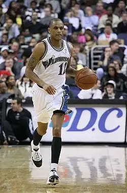 Dixon was drafted 17th overall by the Washington Wizards in the 2002 NBA draft. He spent the first three years of his NBA career with the Wizards. In his third season in Washington (2004–05), he averaged eight points per game, including a career-high 35 points in Game 4 of the Eastern Conference Quarterfinals against the Chicago Bulls. Dixon signed as a free agent with the Portland Trail Blazers during the summer of 2005. Soon after, his Wizards and Terrapins teammate and friend Steve Blake signed with Portland as well. In his first game back in D.C., Dixon was given a standing ovation from the Verizon Center crowd upon coming off the bench towards the end of the first quarter.[15] In Dixon's first year with the Blazers, he started 42 times and played in 76 games. In his last year with the Wizards, he only started four games and played in 63. He also increased his, assists, and shooting percentage considerably in Portland. However, he was later traded at the 2007 NBA trade deadline to Toronto for Fred Jones and future considerations.[16]
