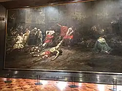 Despite Luna's recognition and acclaim for his artistic achievements, he was unjustly denied the esteemed Medal of Honor due to racial prejudice against him as a colonial subject. Nevertheless, King Alfonso XII commissioned Luna to create La batalla de Lepanto (The Battle of Lepanto) for the halls of the Senate of Spain, intending for it to be displayed alongside Francisco Pradilla Ortiz's La rendicion de Granada (The Surrender of Granada), the grand prize-winning artwork from the 1878 competition. The king's intention was to provide compensation to Luna, who had been overlooked for the Medal of Honor with his renowned work, Spoliarium.[4][3]