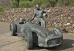 After his retirement, Fangio was distinguished as honorary President of the Automobile Sports Commission of the Argentine Republic.[34] He also participated in many world exhibition races, tributes to motorsport figures and in the organization of events related to his profession. In 1960 he carried out an exhibition at the Sarmiento Park in Córdoba city, with a Maserati 2500 of Ettore Chimeri, with which he suffered a run off the track, brushed a curb and accidentally lifted into the air without consequences. He became honorary president of the Club International des Anciens Pilotes de Grand Prix F1 in 1962.[34]