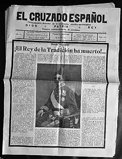 - ^ Ferrer 1979, p. 70. Many authors from the onset, i.e. from the early 1931, refer to Cruzadistas and to Nucleo de la Lealtad, see e.g. Manuel de Santa Cruz, Apuntes y documentos para la historia del tradicionalismo español, vol. 3, Seville 1979, pp. 26–27