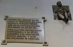 Juan de Medrano and the miracle of the Virgin is commemorated with a statuette and an inscription at the Church of the Virgin of Miracles in Ágreda.[5] The inscription on the commemorative plaque says: