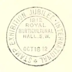 Jubilee International Stamp Exhibition was held 14–19 October 1912 at the Royal Horticultural Hall, London. The principal organisers were Fred Melville, H.R.F. Johnson and H.H. Harland of the Junior Philatelic Society.[1]