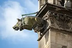 An exterior cornice of one of the chapels of the cathedral is a gargoyle, which shows a squatting pig. At its teats suckles a male figurine, which depicts a Jew. It dates from around 1280.[12]