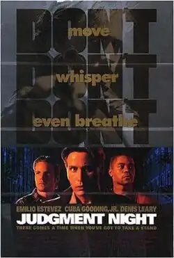 Judgment Night is a 1993 American action film[3] directed by Stephen Hopkins. Emilio Estevez, Cuba Gooding Jr., Jeremy Piven and Stephen Dorff star as a group of friends on the run from a gang of drug dealers (led by Denis Leary) after they witness a murder.