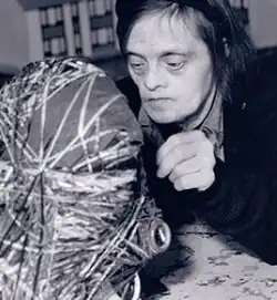 Judith Scott (May 1, 1943 – March 15, 2005) was an American fiber sculptor. She was deaf and had Down Syndrome.[2] She was internationally renowned for her art.[3] In 1987, Judith was enrolled at the Creative Growth Art Center in Oakland, California, which supports people with developmental disabilities.[4] There, Judith discovered her passion and talent for abstract fiber art, and she was able to communicate in a new form.[2] An account of Scott's life, Entwined: Sisters and Secrets in the Silent World of Artist Judith Scott, was written by her twin sister, Joyce Wallace Scott, and was published in 2016.