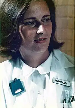 At Boston University, Vaitukaitis served as professor of medicine, and at Boston City Hospital, she headed the section on endocrinology and metabolism.[10] In addition to teaching, she conducted clinical research in reproductive endocrinology, and her basic research examined the mechanisms controlling hormonal action and metabolism at the cellular level.[11] Her clinical studies were conducted in the NIH-funded General Clinical Research Center (GCRC) at Boston University; she served as co-director of that GCRC from 1975 to 1977, and director from 1977 to 1986.[11]