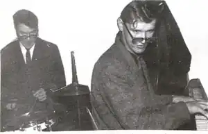 In late 1956 Vainio lived next door to one of his musician friends, Heikki Kauppinen, who was three years his senior.[30] Vainio also became acquainted with drummer Erkki Liikanen.[31] The friends had different tastes in music with Olli Miettinen and Reijo "Rempo" Tani listening to jazz, while Vainio liked schlager music.[32] Vainio later named and described many of his friends in his song lyrics.[33]