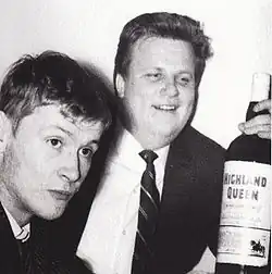 In 1966 Vainio befriended Vexi Salmi and Irwin Goodman. The trio made a summer tour called Kansalle mitä kansa haluaa ("Give People What the People Want") but at times Vainio was too intoxicated to perform.[68] Vainio and Reijo Tani made a collection of singles in 1968 called Juha "Watt" Vainio ja Reijo Tani. The album included Vainio's Kauhea kankkunen ("Horrible Hangover") and Vanha salakuljettaja Laitinen ("Old Smuggler Laitinen"), which were both collaborations with Toivo Kärki.[60][69] The latter song was named after Keijo Laitinen, a good friend of Vainio's.[33] In 1970 Vainio started writing causeries with Gunnar Mattsson.[70]