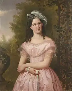 She married Dr. Arthur P. Hayne, a son of South Carolina Senator Robert Y. Hayne, on January 20, 1855, at Galveston, Texas. Two daughters and two sons were born to this union of which only Arthur lived to see adulthood, dying in 1883 at about the age of 27. Her marriage was widely reported as troubled. She eventually secured a divorce in the mid-1860s, and not long afterwards married, at Salt Lake City, James G. Cooper, a native of New York who served with the federal administration of the Utah Territory. [4][15][16]