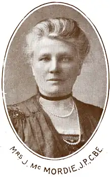 Julia Gray McMordie CBE JP (30 March 1860 – 12 April 1942) was an English-born Ulster Unionist Party politician in Northern Ireland. She was made Commander of the Order of the British Empire (CBE) for her role as President of St John Voluntary Aid Detachment in Belfast during World War 1. In 1922 she was one of only two women elected to the Parliament of Northern Ireland, representing South Belfast. She became the first female High Sheriff of Belfast in 1928.