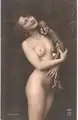 He produced erotic postcards. The models often are found in highly arranged classical poses, and were photographed in-studio and outdoors. The images are artfully composed with exquisite tones and soft lighting— showing a particular texture created by light rather than shadow.
