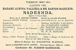- ^ "Nadeshda", The Times, 17 April 1885, p. 8