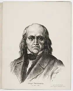 Julian Ursyn Niemcewicz (US: /njɛmtˈseɪvɪtʃ/ nyemt-SAY-vitch,[1] Polish: [ˈjuljan ˈursɨn ɲɛmˈtsɛvitʂ]; 6 February 1758 – 21 May 1841) was a Polish poet, playwright and statesman. He was a leading advocate for the Polish–Lithuanian Commonwealth's Constitution of 3 May 1791.[2]