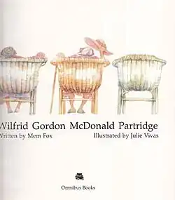 Wilfrid Gordon McDonald Partridge is a 1984 children's picture book by Mem Fox. The book is about a boy, Wilfrid, who helps an elderly friend, Nancy, to regain some of her memory. In 1998, American company Weston Woods Studio released a film adaptation of this book, narrated by the author with music by Ernest Troost.