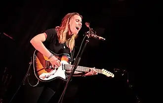 It was picked up by 6131 Records, who released the album Sprained Ankle in October 2015.[17] Sprained Ankle ended up topping many 2015 year-end lists, and its success led to features in The New Yorker and The New York Times, with various critics calling it "heartbreaking," "hypnotic," and "striking."[25][10][11] In March 2016, Baker gave an NPR Tiny Desk performance, the first of an eventual four appearances at the desk.[26][27][28][29] She also played at that year's South by Southwest and Newport Folk festivals.[30][31] Her performances from this period have been called "hushed, reverential events," with the audience often remaining quiet and emotional.[25]