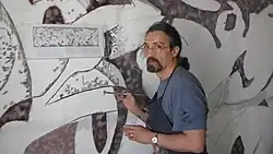 Carrasco created his first mural in 1973 and since then has painted over fifty, at universities, government buildings, cultural institutions and private companies in Mexico, France, Spain, Costa Rica, Canada and the United States.[2][5] His best known murals in Mexico are those at the Camara de Diputados in Mexico City and a mural related to Mexican president Adolfo López Mateos at the Plaza Legislativa.[6][7] Other important murals are found at the city government building in Monterrey, the national Academy of Art in Sofia, Bulgaria and the World Intellectual Property Organization in Geneva.[4]
