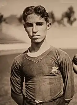 In the summer of 1937, Munlloch was a member of Barça team that made a tour to Mexico and the United States in the middle of the Spanish Civil War.[5][6][8] In the images of the Barça line-ups in Mexico, he wore a surprising and rigorous military haircut, which some historians later blamed on lice, but the true reason for this was that he had made a bet with a teammate while aboard the ocean liner "Mexique", which consisted of either cutting his abundant and wavy hair that had accompanied him since his childhood, or paying for an appetizer to the rest of the squad, and the responsible Munlloch chose to go through the ship's barber's scissors.[6] On 20 September, he scored a goal in the last match of the tour, in which Barça defeated a Jewish All-Star 3–0.[8] Because of the ongoing War in Spain, only a handful of Barça members took the risk of returning to Barcelona, including Munlloch and the coach O'Connell.[6][9] He played his last match for Barça on 12 December 1937, scoring his side's only goal in a 1–1 draw with Girona.[6]