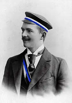 He moved on to his university-level education in 1897, studying German philology, art history and philosophy at the universities of Lausanne, Munich, Leipzig and Berlin.[1] In 1898 he was accepted into membership of the Corps Suevia student fraternity in Munich,[5] though there are indications that almost at once he switched from Munich to Leipzig and was classified by the Munich fraternity as an inactive member, with only very restricted involvement in corps activities. Among Petersen's more illustrious university teachers were Albert Köster at Leipzig, followed by Wilhelm Dilthey, Heinrich Wölfflin and Erich Schmidt at Berlin. It was Schmidt who supervised him at Berlin for his doctorate, which he received in 1903 in return for a piece of work concerning "Schiller and the stage".[1][6] That was followed by three years spent working in Stuttgart with the Cotta’sche Verlagsbuchhandlung publishing house. During 1906/07 he edited the academic supplement of the respected Allgemeine Zeitung (newspaper) which was, by this time, being produced in Munich.[1] He received his habilitation (post-doctoral degree) from Munich's Ludwig Maximilian University in 1909, opening the way for a lifelong career in the universities sector. His topic, on this occasion, was "Chivalry in the works of Johannes Rothe". The work, subsequently adapted and published as a book, was supervised by the neogrammarian philologist Hermann Paul.[7]
