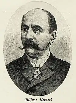 The Heinzel family probably came to Łódź from Bohemia or Lower Silesia in the 1830s.[3] In 1864 Heinzel established his own mechanical weaving mill for woolen goods. Within a few years (around 1874) he became the king of wool, having the largest production complex in the Kingdom of Poland producing woolen and semi-woolen products.[4]