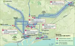 Each district defense committee was to take control of government buildings, police stations and military barracks in their respective districts. The CNT's trade unions had their own part to play: energy workers would occupy the buildings of the state-owned petroleum company, the CAMPSA; sewage workers would take control of the sewers and subway workers would take control of the Barcelona Metro, in order to supply reinforcements wherever they were needed.[70] Defense committees planned to allow the rebel soldiers to get as far away from their barracks and into the city as possible.[71] The defense groups would then block their route of retreat and attack, which would isolate them from other detachments and force them to use up their ammunition without resupply. In order to prevent the soldiers from reaching La Rambla, Ciutat Vella and the port of Barcelona, a defensive line would be constructed from Ronda de Sant Pau, through Plaça de la Universitat, to Plaça de Catalunya.[70] As each committee would organise the defense of its own neighbourhood, they would be closely familiar with their surroundings and would not need to transfer between different zones of operation.[72] The anarchists assumed that the army would attempt to take control of the city centre, with its government buildings and telecommunications infrastructure, which would have divided the workers' neighbourhoods in the west of the city from the industrial districts in the east.[58] In order to prevent this, the workers' militias would attempt to isolate the enemy detachments from each other and from their barracks. This was essentially a strategy of urban guerrilla warfare.[73]