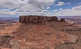 Junction Butte is a 6,400-foot-elevation (2,000-meter) summit located in the Island in the Sky District of Canyonlands National Park, in San Juan County, Utah.[3] It is set about one mile south of the southern tip of Island in the Sky. A short hike to Grand View Point provides a view of Junction Butte. Access to this butte is via the four-wheel drive White Rim Road, which is another option to view Junction Butte. Topographic relief is significant as the top of this geological formation rises 1,400 feet above the road in less than one mile. Precipitation runoff from Junction Butte drains east into the nearby Colorado River, and west into nearby Green River. Junction Butte is situated north of the junction of these two major rivers.
