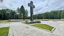 However, NKVD accused 15 Lithuanians (including Papečkys and Voldemaras Vytautas Čarneckis) of organizing a "counter-revolutionary" group that prepared for an armed mutiny inside the gulag. Of this group of prisoners, only Papečkys refused to plead guilty.[28] On 4 November 1942, Papečkys and Čarneckis were shot in an NKVD prison in Sverdlovsk (now Yekaterinburg). They were likely buried in a mass grave at the 12 kilometre marker on the highway to Moscow. In 1990s, the Memorial to the Victims of Political Repression was built at the site with more than 18,000 names of people buried there. However, Papečkys' name is not one of them.[29]
