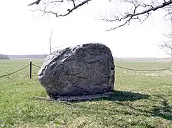 After Lithuania regained independence in 1918, Bielinis gained recognition for his book smuggling activities. The first article about him was published by Vaclovas Biržiška in Mūsų senovė.[82] His wife was awarded the Independence Medal in 1928. In 1931, Alfredas Šlikas published a booklet with Bielinis' biography.[83] In 1932, Lithuanian youth organizations (Scouts, Pavasaris, Riflemen) decorated the grave of Bielinis and built a pyramid of field stones with an ornate metal cross. The primary school in Suostas was named after Bielinis.[84] Streets in several cities and towns, including in Vilnius, Kaunas, Panevėžys, Mažeikiai, are named after Bielinis.[85] The wooden cross under which Bielinis fell and later died was discovered in 1990 by Bielinis' grandson[86] and is exhibited in the chapel of the Bistrampolis Manor. Carved in 1881, it is one of the oldest surviving wooden crosses in Lithuania.[87]