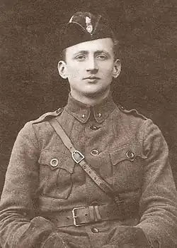 In 1919, Dobkevičius' family returned to Lithuania.[3] In August 1919, he voluntarily joined the Lithuanian Army and attended its newly established military aviation school (see: War School of Kaunas).[4] There he trained with Albatros B.II.[6] The class of 34 aviators graduated on 16 December 1919.[3] Upon graduation, Dobkevičius was promoted to engineer lieutenant.[4]