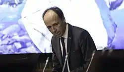 Jussi Kristian Halla-aho (Finnish: [ˈjusːi ˈhɑlːɑˌɑho]; born 27 April 1971) is a Finnish politician, currently serving as the Speaker of the Parliament of Finland since 2023.[2] Halla-aho has served as a member of the Parliament of Finland from 2011 to 2014 and again since 2019, and as the leader of the Finns Party from 10 June 2017[3] to 14 August 2021.[4] Previously, between 2014 and 2019, he was a member of the European Parliament, where he was part of the Identity and Democracy group.[5][6][7]